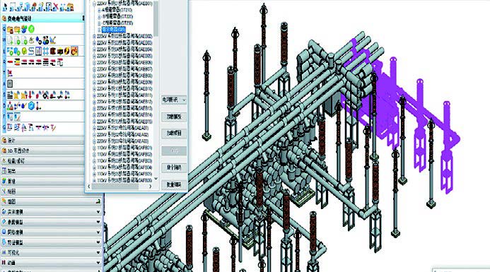 引進(jìn)三維設(shè)計(jì)技術(shù)后,設(shè)計(jì)企業(yè)可以實(shí)現(xiàn)很多二維設(shè)計(jì)技術(shù)不能實(shí)現(xiàn)的校驗(yàn)功能,如帶點(diǎn)間隙校驗(yàn)、風(fēng)偏校驗(yàn)等。布置設(shè)計(jì)是變電工程設(shè)計(jì)的重點(diǎn),而帶電安全距離校驗(yàn)技術(shù)更是布置設(shè)計(jì)的重中之重。三維設(shè)計(jì)技術(shù)等同于計(jì)算系統(tǒng)上的真實(shí)變電站,可以方便準(zhǔn)確的完成出線集中、空間受限條件下的關(guān)鍵區(qū)域的設(shè)計(jì),而這些關(guān)鍵區(qū)域的設(shè)計(jì)往往是一個(gè)變電工程布置方案優(yōu)劣的瓶頸。三維技術(shù)可以準(zhǔn)確模擬出實(shí)際的情況,結(jié)合參數(shù)化模型信息,就可以快速地完成靜態(tài)和動(dòng)態(tài)下的安全距離校驗(yàn)。