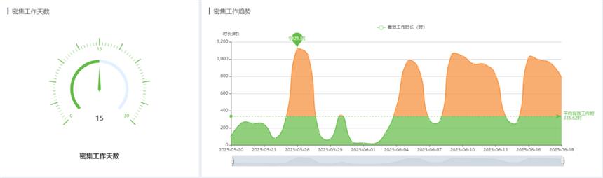 使用場(chǎng)景:在了解各部門(mén)的“用時(shí)高峰”與“授權(quán)緊張”時(shí)段后,信息化部門(mén)可合理安排項(xiàng)目里程碑或技能培訓(xùn),錯(cuò)峰使用,提高整體系統(tǒng)效率。