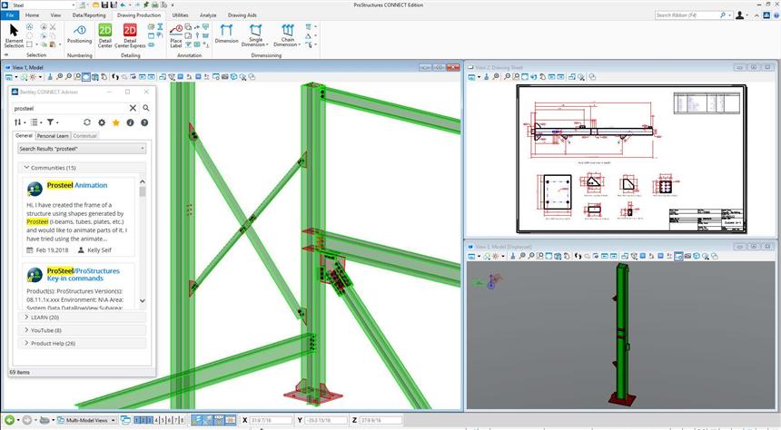 借助 ProSteel,結構工程師、詳圖設計師和加工廠技術人員都能夠高效、準確地創(chuàng)建鋼結構模型和文檔。ProSteel 提供了一個直觀的三維建模系統(tǒng),該系統(tǒng)非常適合于應對復雜的鋼結構并提取鋼結構設計圖、加工詳圖和安裝圖,并在三維模型發(fā)生更改時自動更新圖紙。此外,還可以自動插入和實時更新詳圖材料表和單獨的零構件材料表及物料清單。